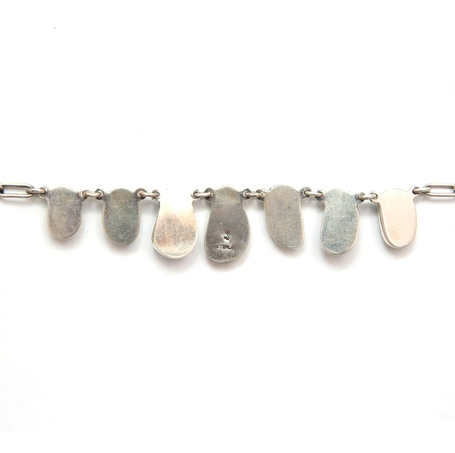 Pretty sterling silver and turquoise slab necklace by Federico Jimenez. Slabs measure .5-.75" long. Chain is 18" long but can be adjusted shorter.