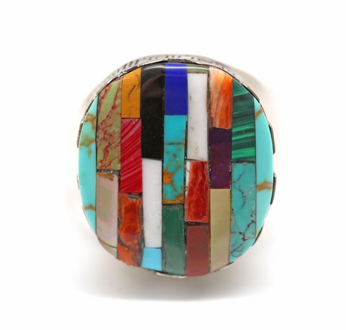 Zuni Sterling Turquoise Coral Ladybug Ring