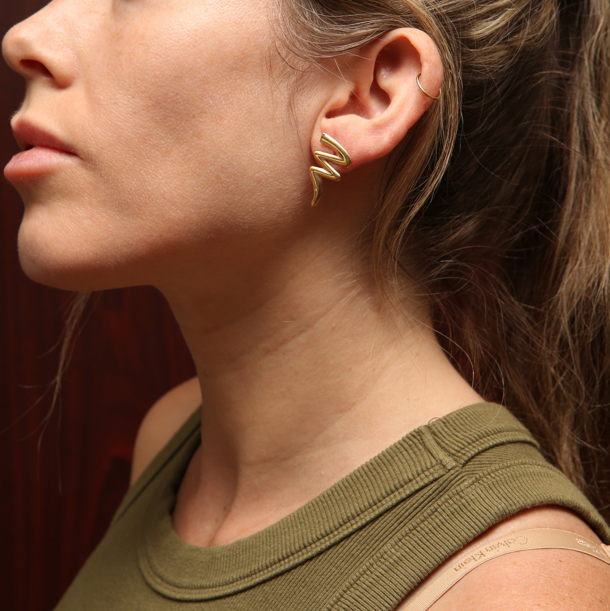 Want that killer Picasso/Tiffany & Co. earring look for half the price? These 1980's 14k yellow gold scribble earrings will do just the trick. Earrings measure 1" long. 2.86 grams.Layaway available