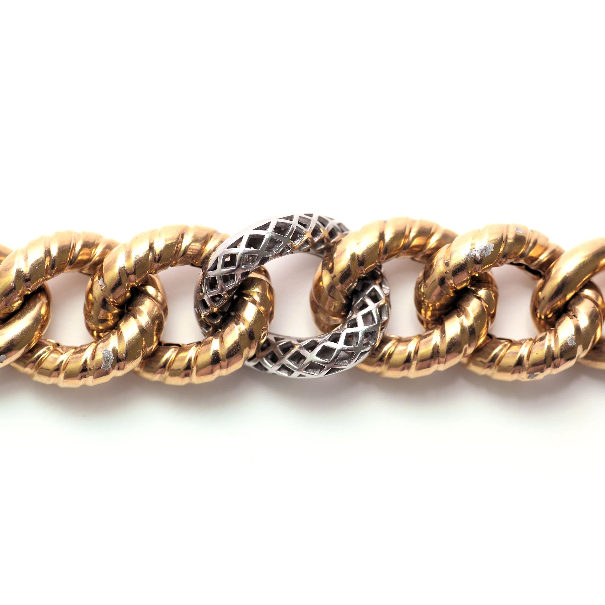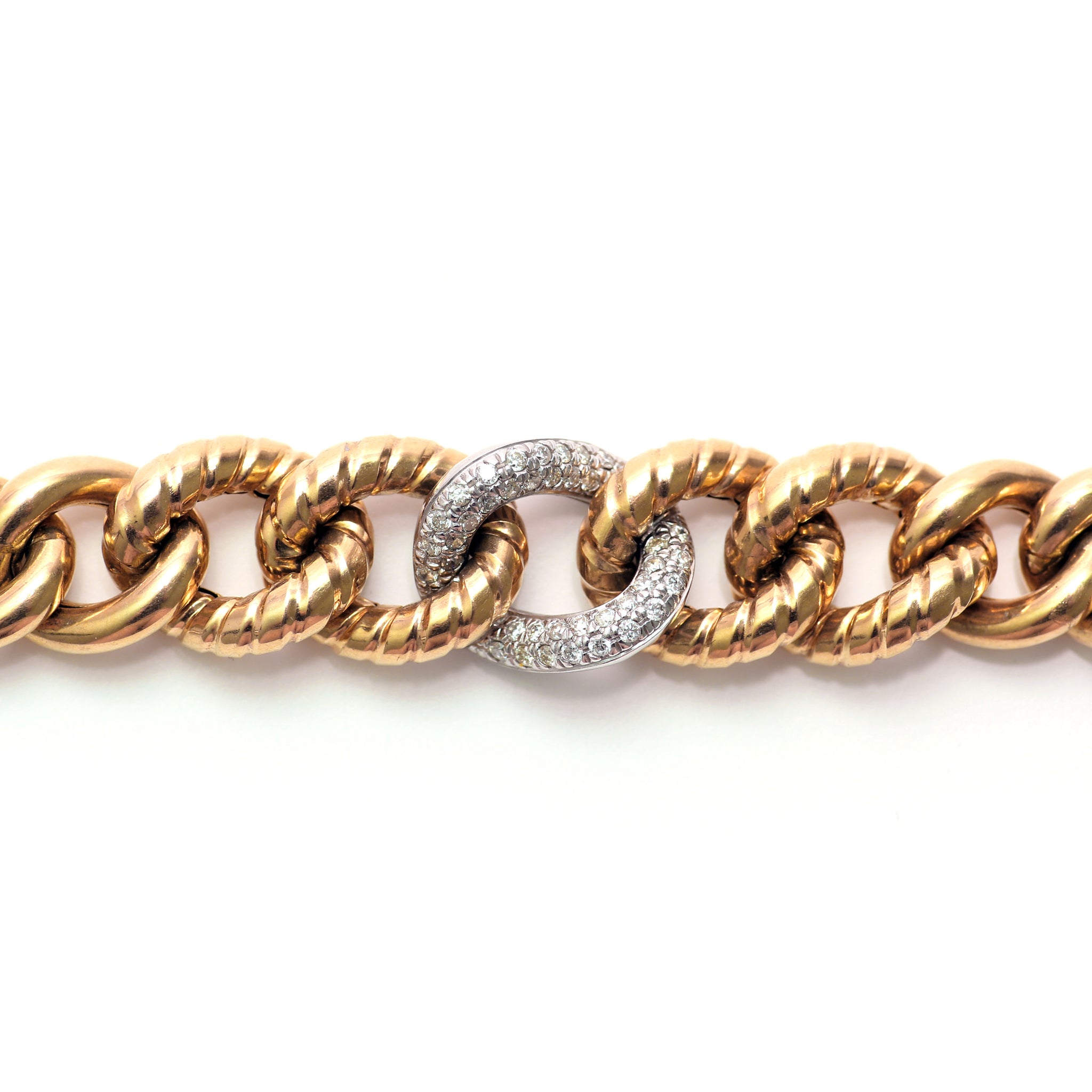 Vintage Italian 14k yellow gold puffy curb link bracelet. Bracelet tapers down from 1/2" in the center to 3/8" at the ends. 8 inches in length. 16.9g.